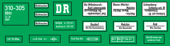 Decal TT für einen Personenwagen preuss. Di 91 DR Ep. 3 - Bausatz Decals für den Bausatz des Personenwagens Di 91 in Epoche 3 (siehe Artikel 401651).