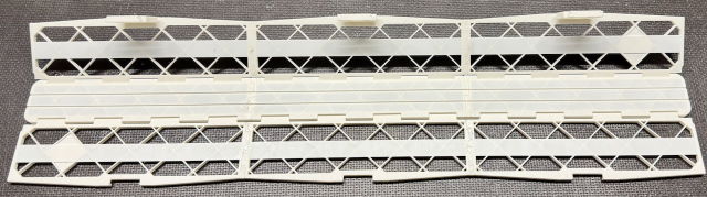 Transporteinsatz lang mit einer Grundfläche von 56 x 3,6cm und einer Höhe von 5,8cm. Die Teile bestehen aus dem Kunststoff ABS. enthalten ist: - Transporteinsatz extra lang mit versetztem Klebestreifen z.Bsp. für Kesselwagen mit einer Grundfläche von 56 x 3,6cm und einer Höhe von 5,8cm