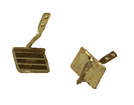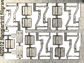 Ätzteil TT 4 Paare besonders detaillierte Rangiertritte (zweiteilig) zum Nachrüsten von Güterwagen - Bausatz Bausatz mit besonders filigranen Rangiertritten für Güterwagen. Die Tritte sind zweiteilig aus Brett und Haltestange. Die Tritte werden duch das Verlöten der Teile noch stabiler. Vor dem Zusammensetzen die Hinterkante des Trittbretts 90° aufwinkeln. Der flache Haltesteg wird wie beim Vorbild um 90° verdreht und außen an der Pufferbohle befestigt. Dafür werden in die Pufferbohle passend zu den 2 Löchern im Haltesteg ebenfalls Löcher gebohrt. In die Löcher des Tritts werden 0,3mm Bronzedrähte eingelötet, mit denen der Tritt an der Pufferbohle aufgesteckt und verklebt wird.