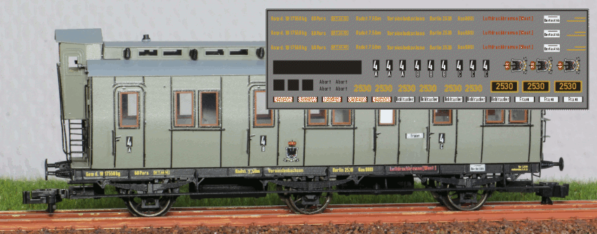 Decal für Artikel Nr. 480262 KPEV 4. Klasse - Bausatz Bauanleitung Beschriftungssatz Abteilwagen 4. Klasse, Epoche 1 der KPEV, f¨¹r Bausatz ArtNr. 480262
