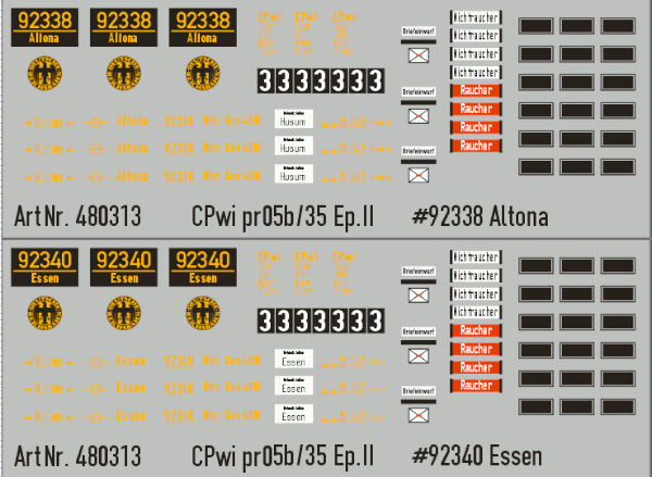 Decal für Artikel 480312 DRG 3. Klasse - Bausatz Bauanleitung Beschriftungssatz Durchgangswagen CPwi pr05/35, Epoche 2 der DRG, f¨¹r Bausatz ArtNr. 480312 Zwei unterschiedliche Nummern verf¨¹gbar.